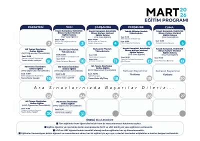 ![]() | KURUMSAL EĞİTİCİ EĞİTİMİ PROGRAMI DUYURUSU Eğitim Öğretim Geliştirme Koordinatörlüğü 08/01/2026 393 Okunma